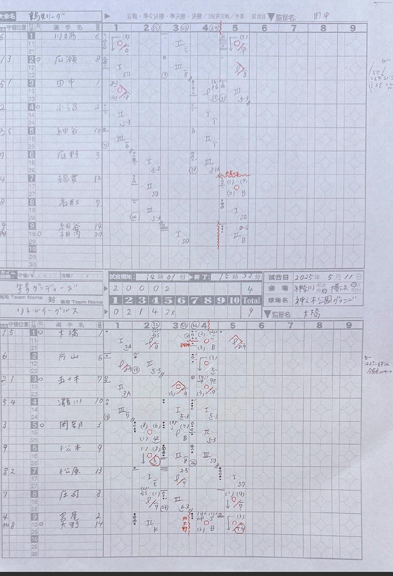 ○ リトルイーグルス 9x 対 4 ● 生麦ダンディーズ/鶴見リーグ春季大会通算;2勝0敗