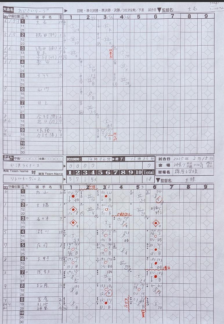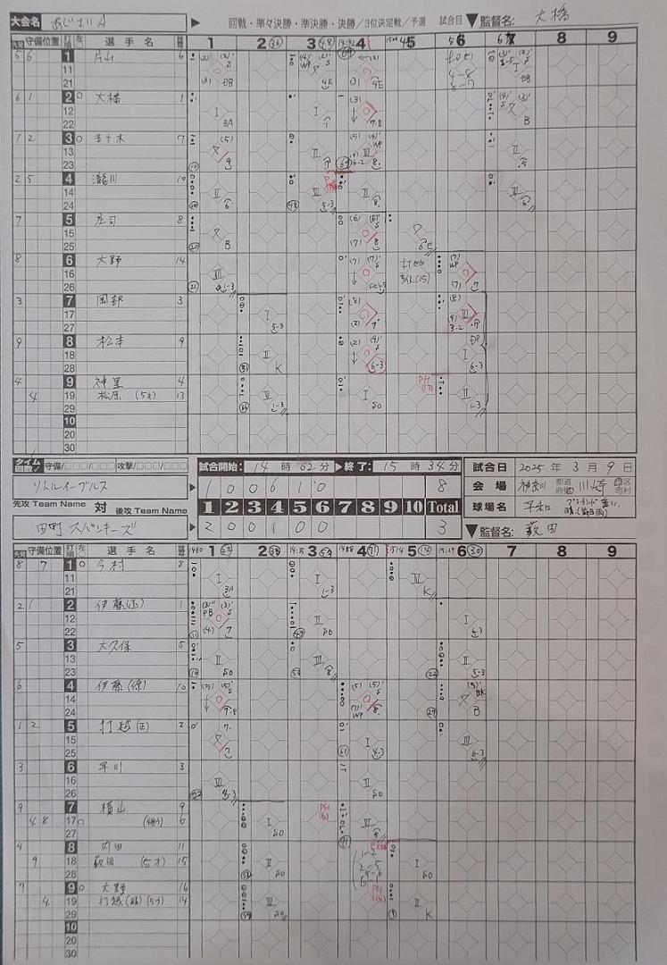 /安打/本塁打;五十木2、大橋 /二塁打;庄司 /単打;岡部、片山