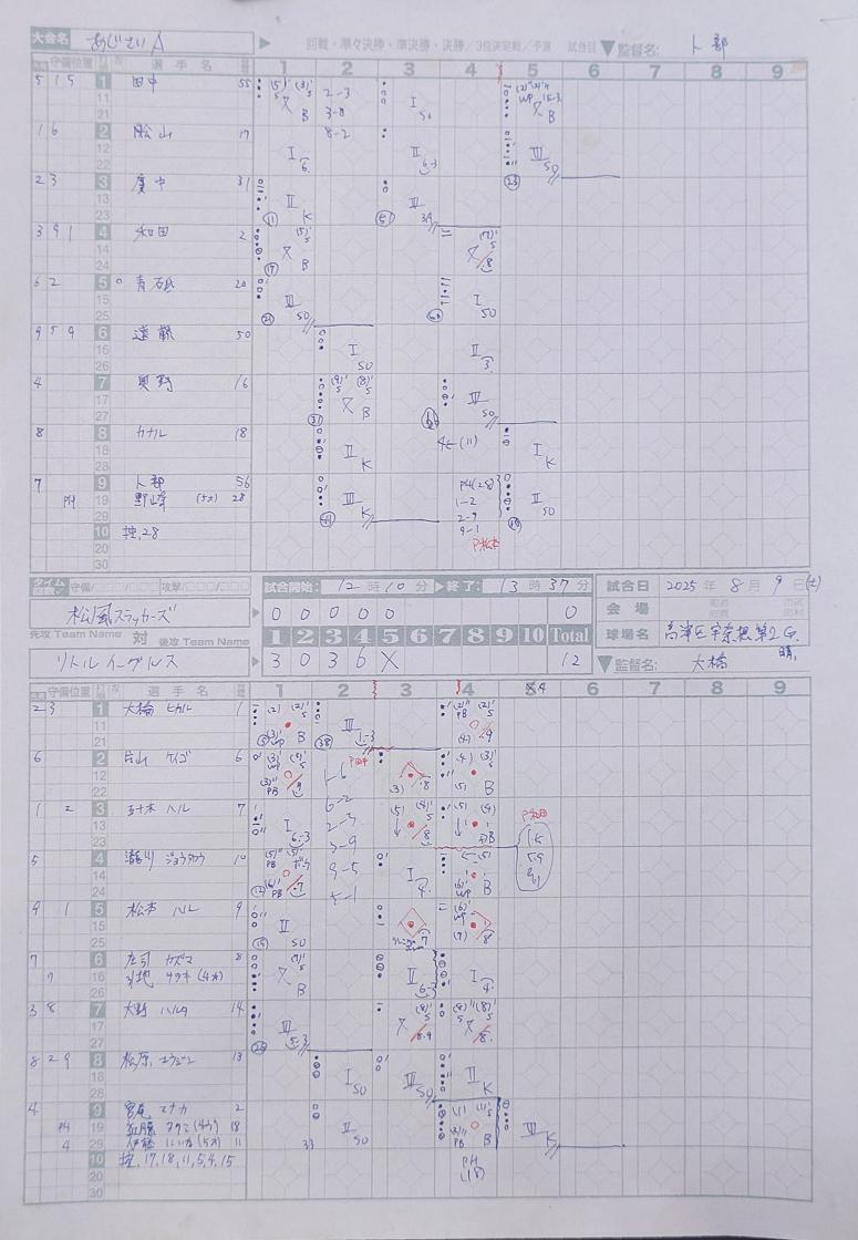 試合経過/あじさいAリーグブロック戦第8回戦。/先発バッテリーは松本-五十木。3回から投手岡部救援。