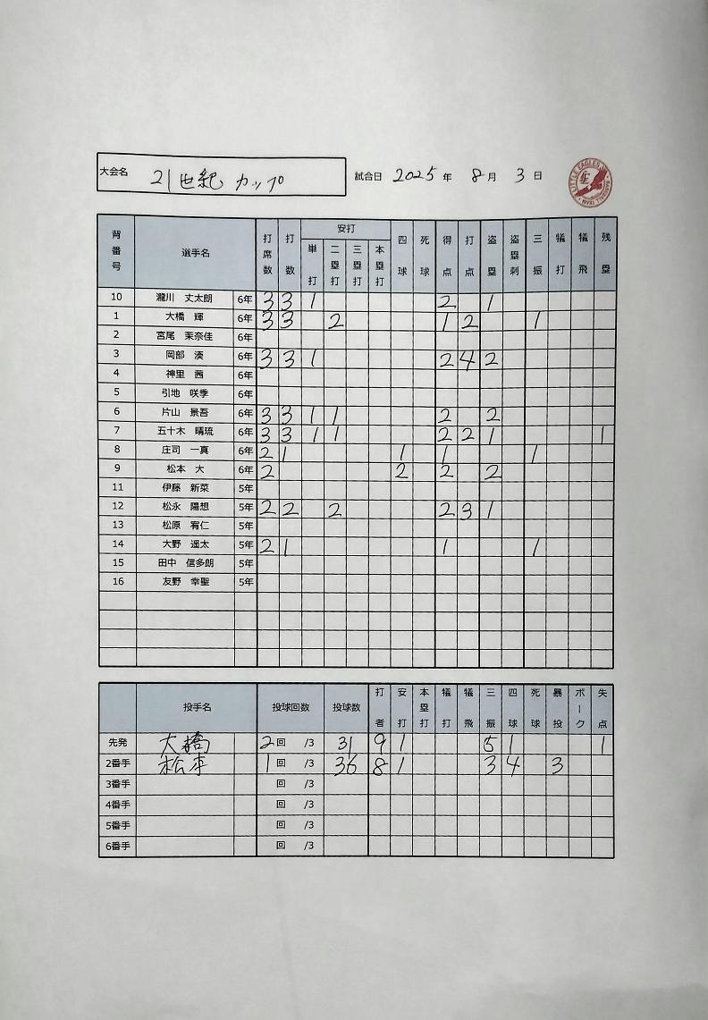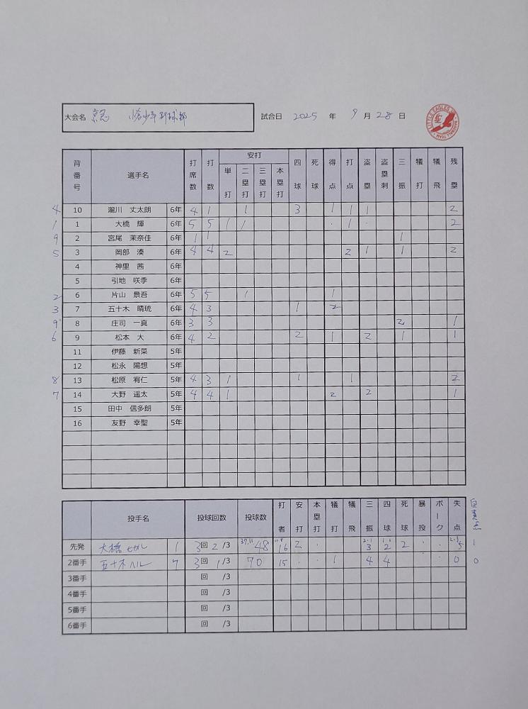 /安打/ /二塁打;大橋、片山、瀧川 /単打;岡部2、大野、大橋、松原