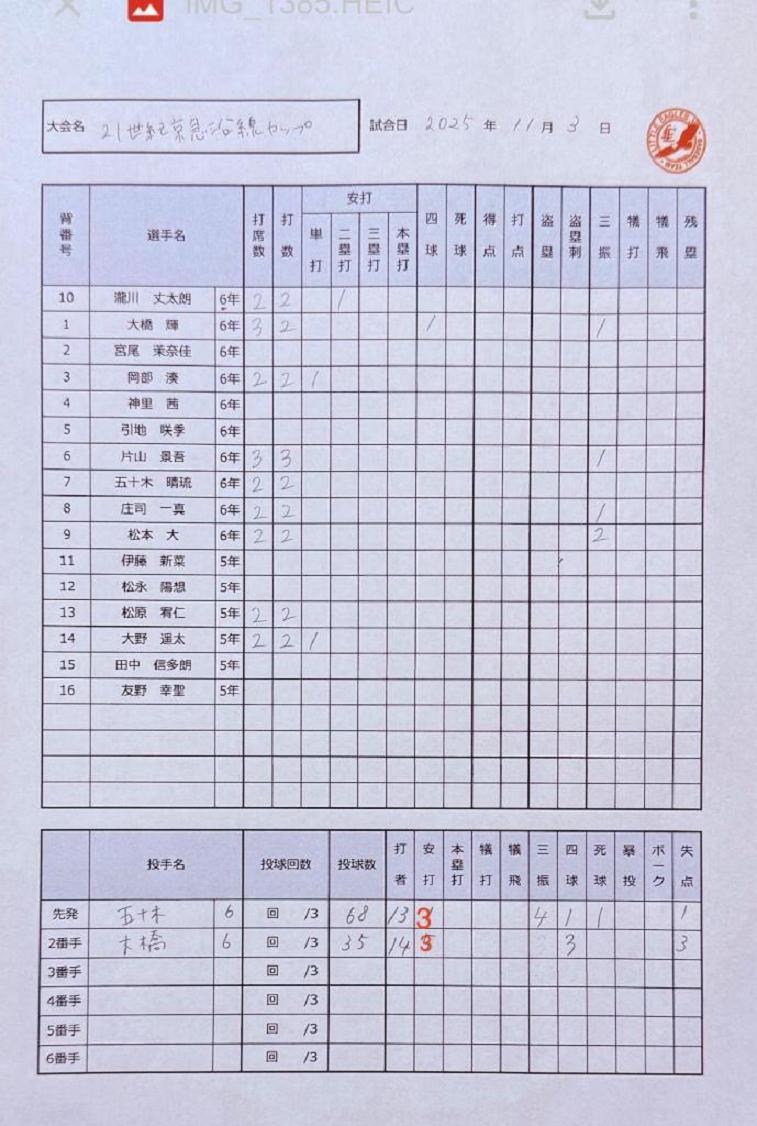 2025年度京急(21世紀)カップ 決勝トーナメント第3回戦 ('25/11/03/11:42〜鳥浜G)