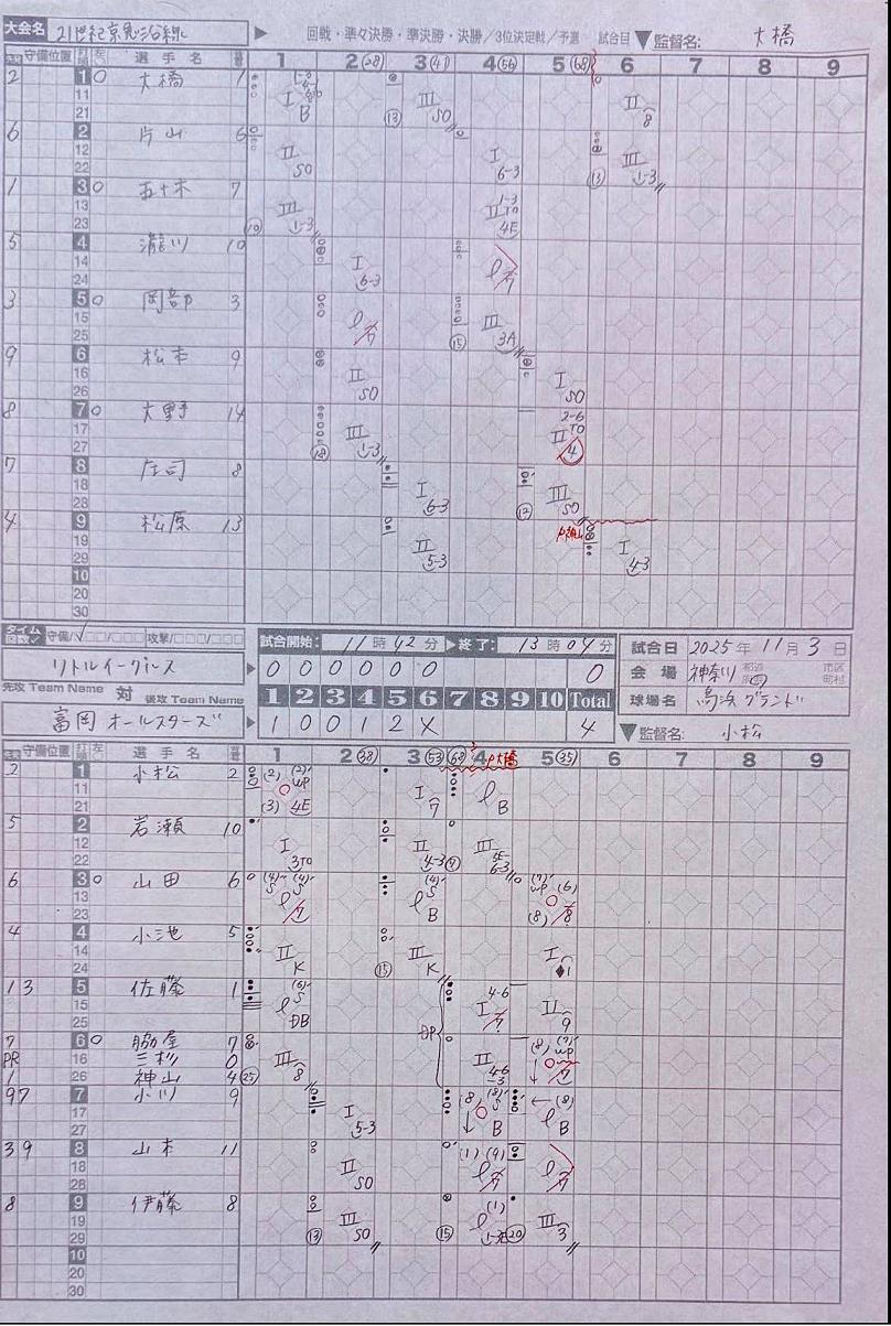 ● リトルイーグルス 0 対 4x ○ 富岡オールスターズ/2025年度京急カップ大会通算;3勝1敗