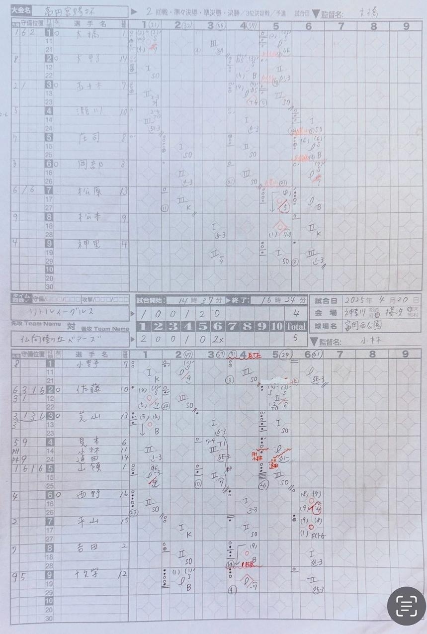 ● リトルイーグルス 4 対 5x ○ 仏向睦ヶ丘ベアーズ/高円宮賜杯横浜市大会通算;1勝1敗