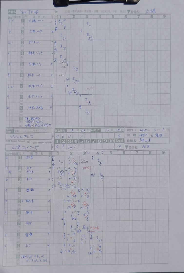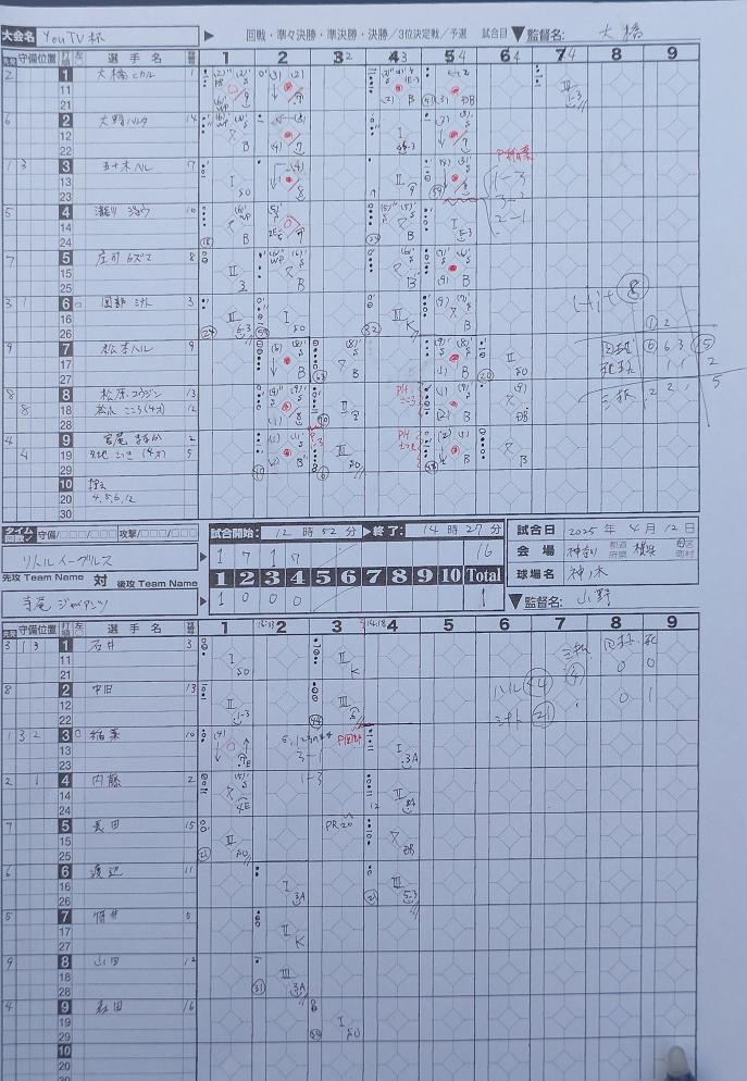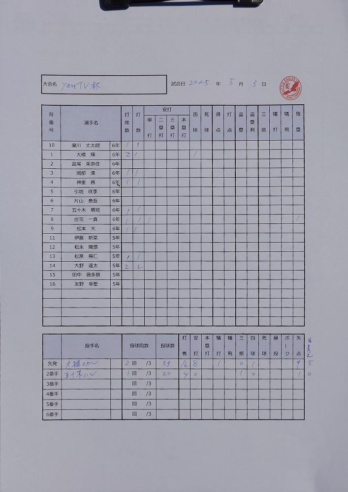 試合経過/youTV杯第2戦。先発バッテリーは大橋-五十木。3回から五十木-松原